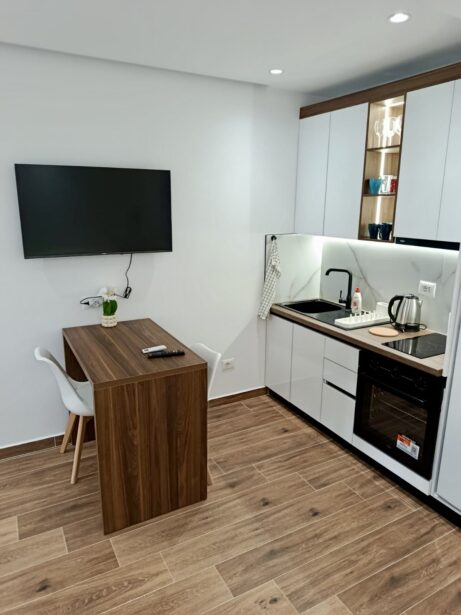 • Plně vybavená kuchyň - opravdu si tam uvaříš, pokud budeš chtít (to totiž v Albánii není samozřejmost. Sice se píše, že si můžeš uvařit, ale ve skutečnosti nemáš moc na čem - mluvím ze své zkušenosti).