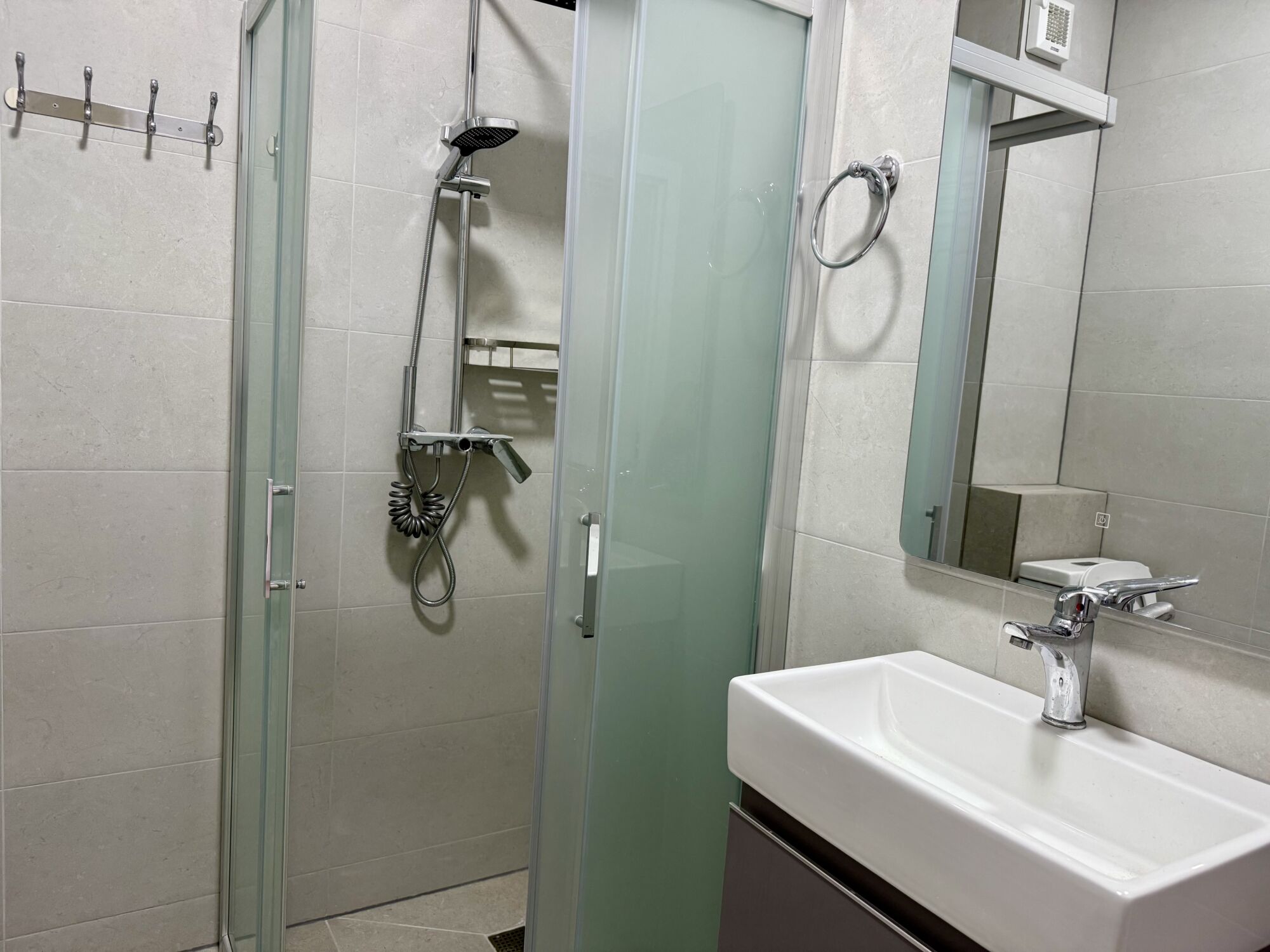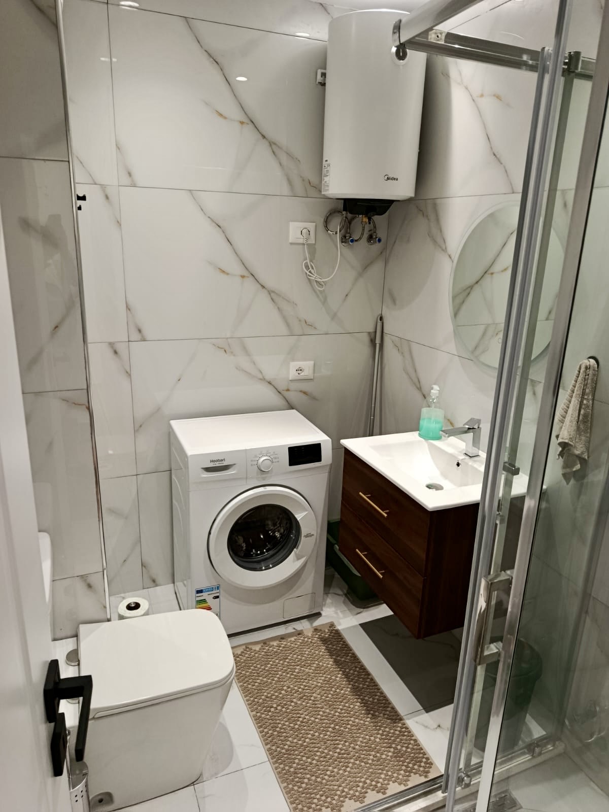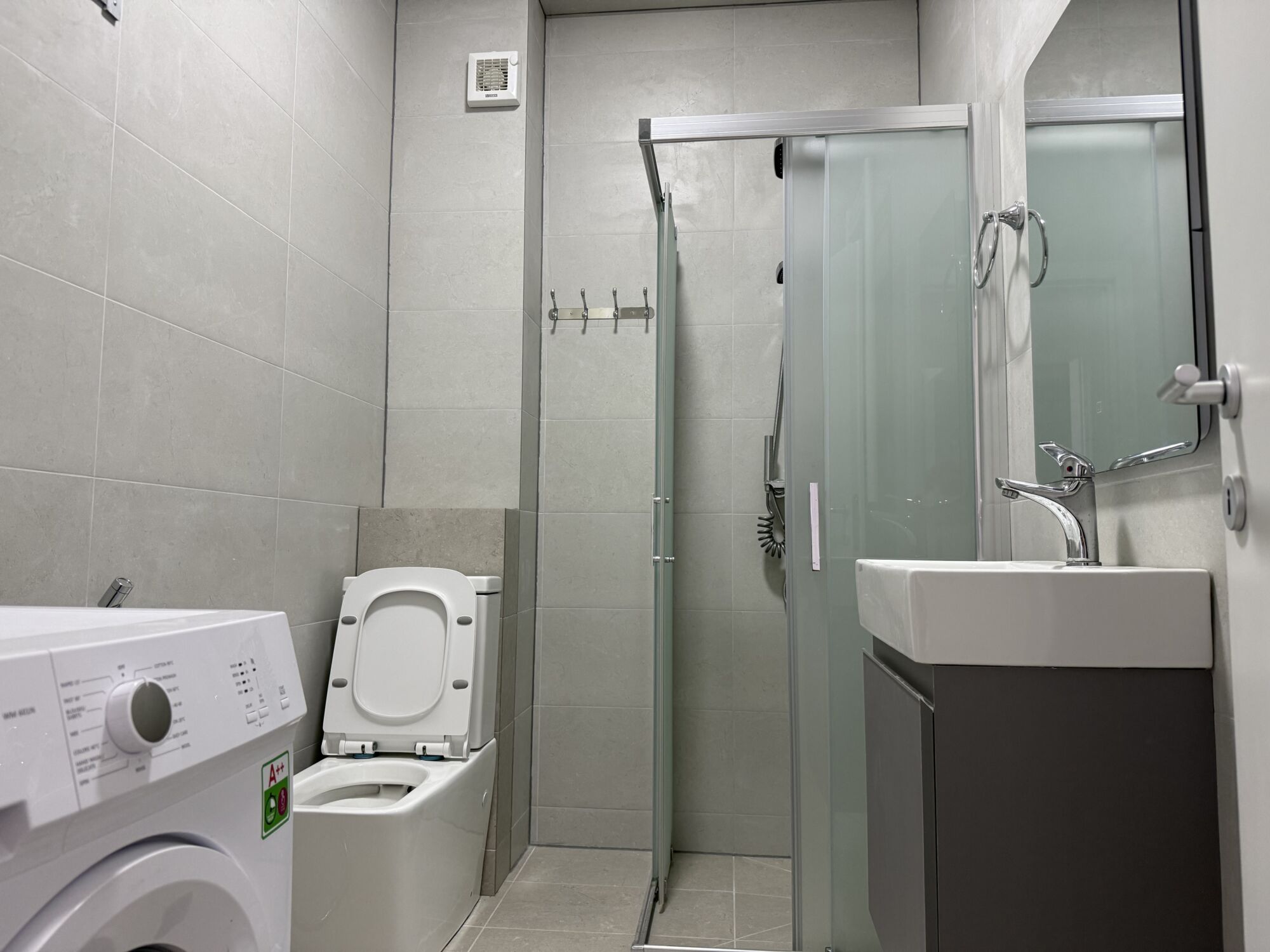koupelna: WC, bidetová sprcha, sprchový kout, pračka